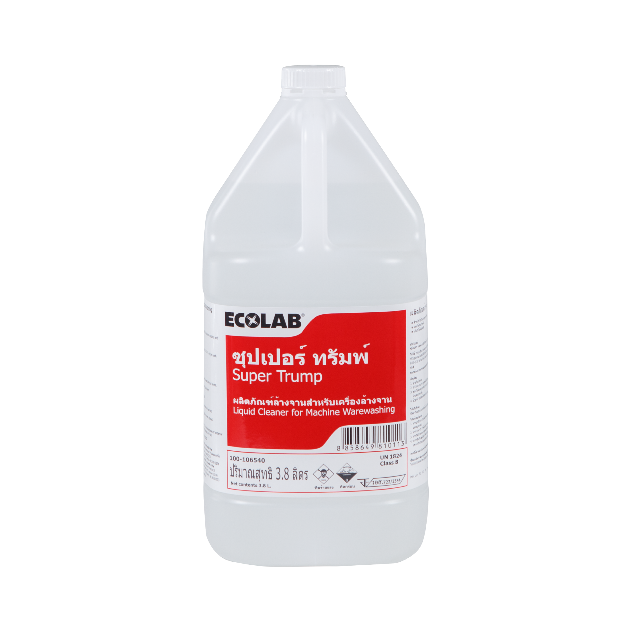 Super Trump là một hóa chất tẩy rửa dùng cho máy rửa chén đậm đặc dạng lỏng, với hoạt tính kiềm cao. Sản phẩm có thành phần làm mềm nước, đặc biệt thích hợp để hạn chế các đốm và các vệt nước sau khi rửa.